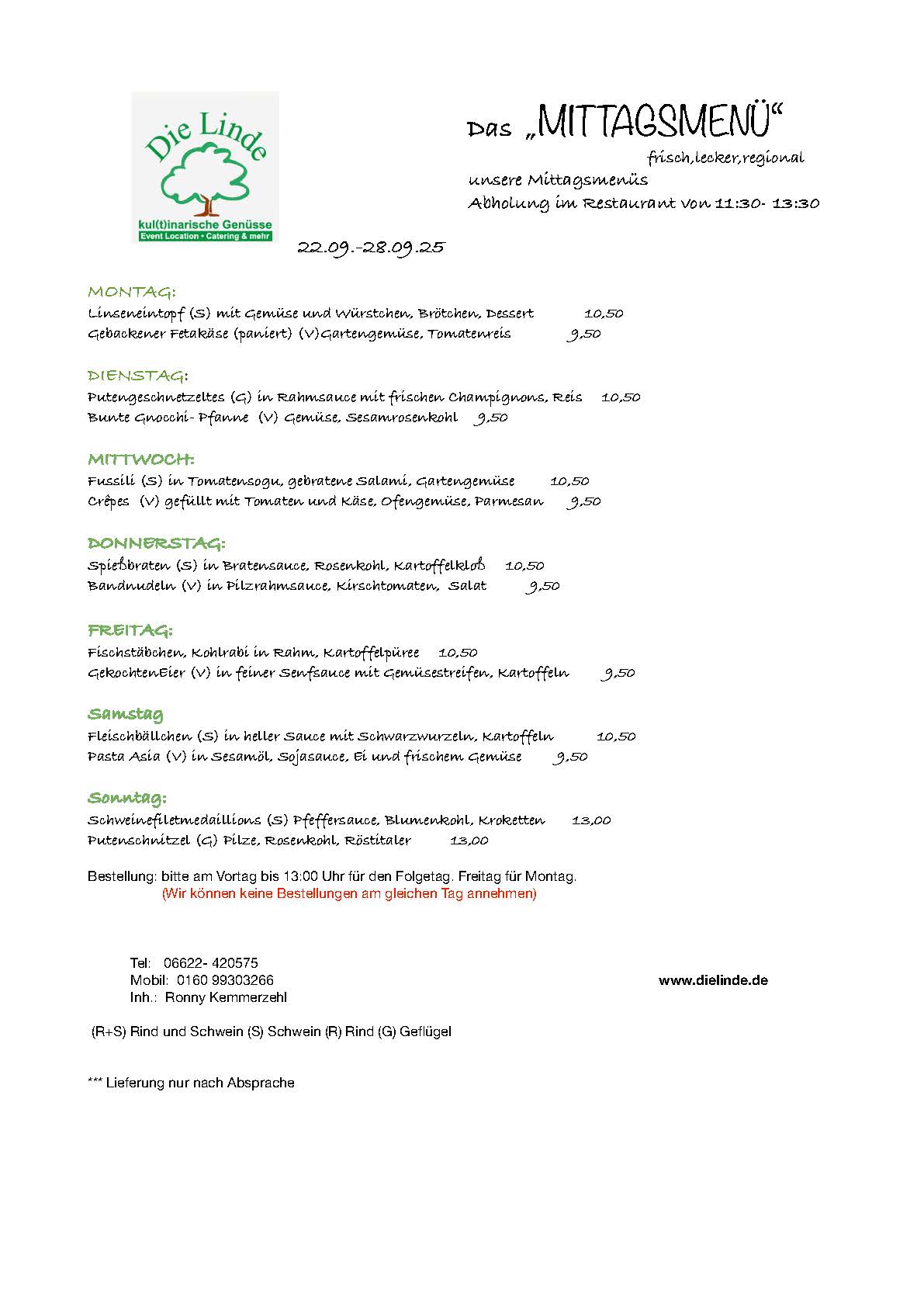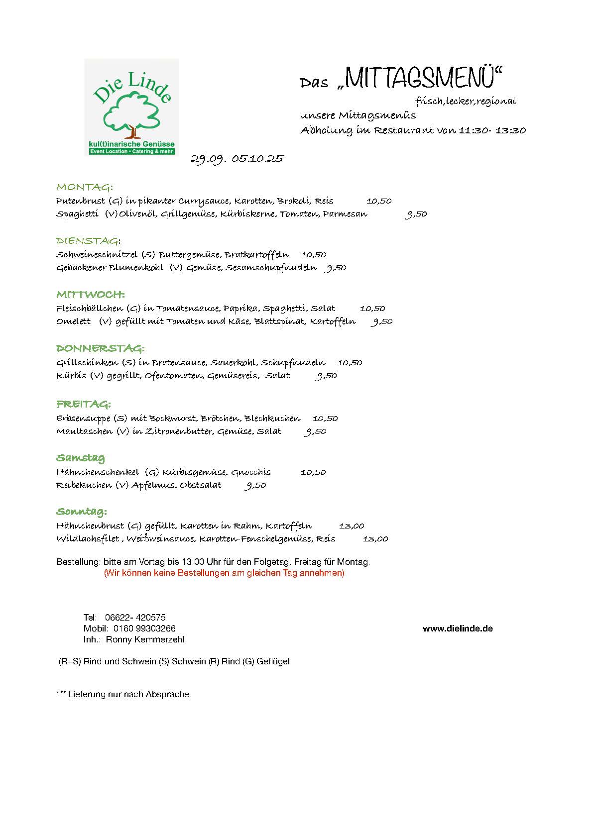 Mittags-Menüplan